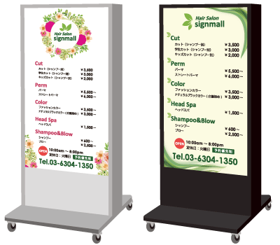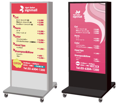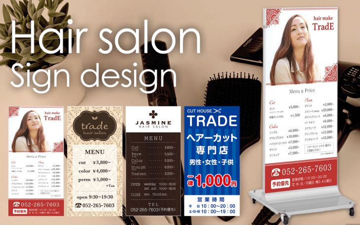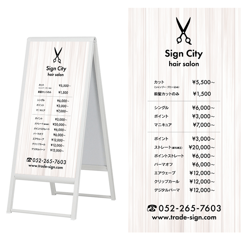 ロゴがなくても大丈夫!美容院メニュー看板デザイン製作看板のサインシティ。