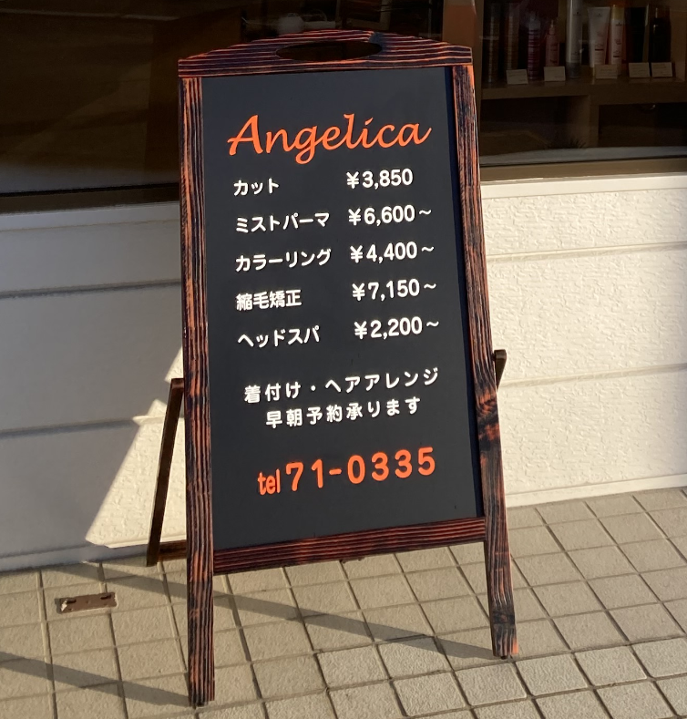 店先のメニュー表にA型スタンド看板ロシナンテ美容室様 - 看板デザイン・制作・施工のメイク広告。
