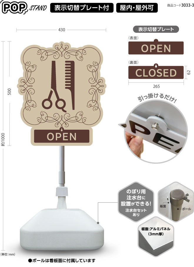 スタンド看板 プレート付 美容室アイコン2 open closedデザインのぼり旗や横断幕、タペストリー製作ならあぴまちNet。