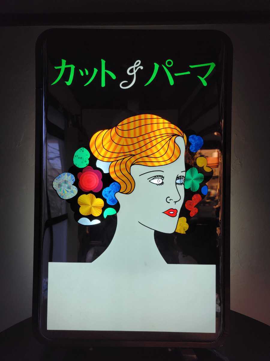 昭和レトロ ヴィンテージ カット&パーマ 電光看板 理容店 美容室 ヘアーサロン 床屋さん。