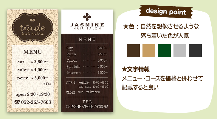 美容室さんのメニュー表を作製しました – 看板製作のライトビコ。