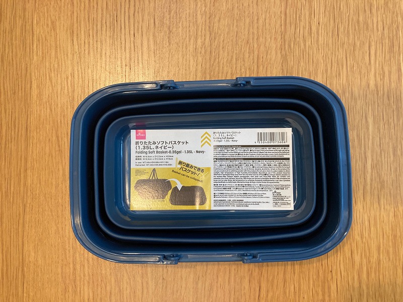 100均「折りたたみコンテナ」の商品情報とサイズ・収納例。ダイソーで販売 4549131869828。