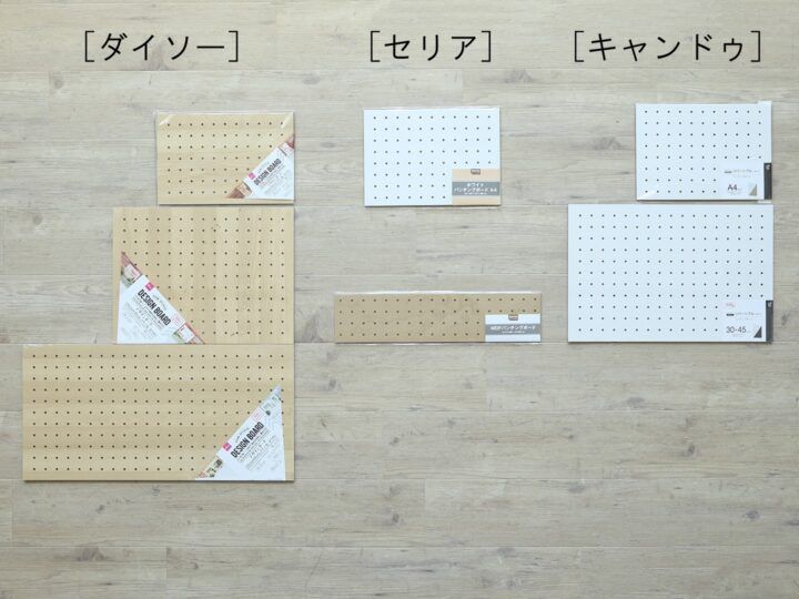 100均セリアで売っていたMDFパンチングボード商品一覧・サイズ 100円。