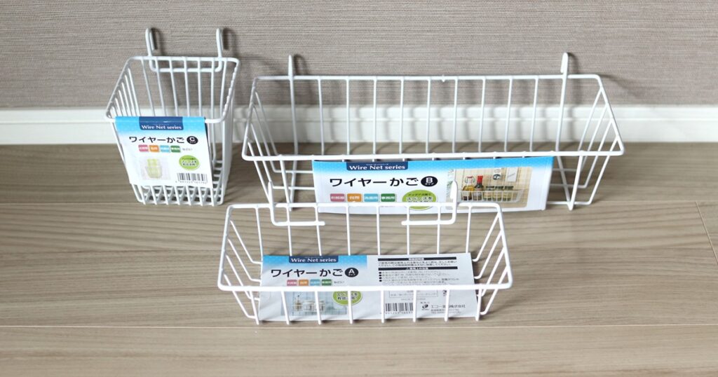 ダイソーワイヤーネット3枚&カゴ4つ。