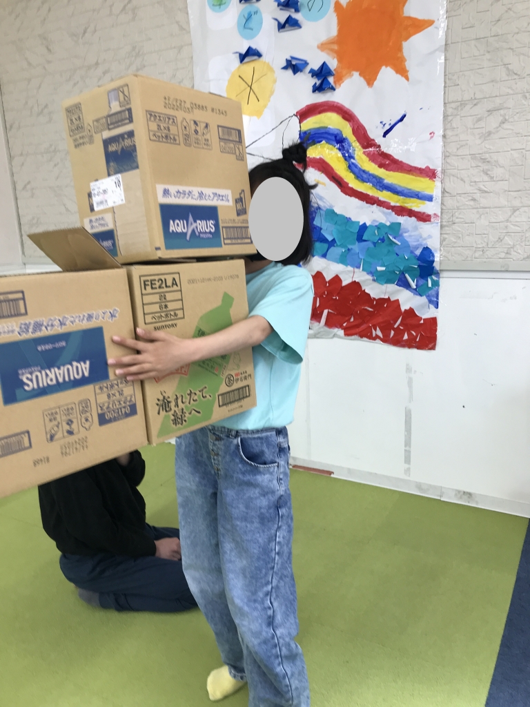ダンボール 秘密基地ダンボールを使って秘密基地を作りました📦 扉をつけたり窓をつけたりと自分たちの想像する秘密基地を作りました♪出来上がるとみんなで家に入り、やりとりを楽しんでおられました☺️カラフル金沢もりの里校 スポーツプログラム 運動あそび。