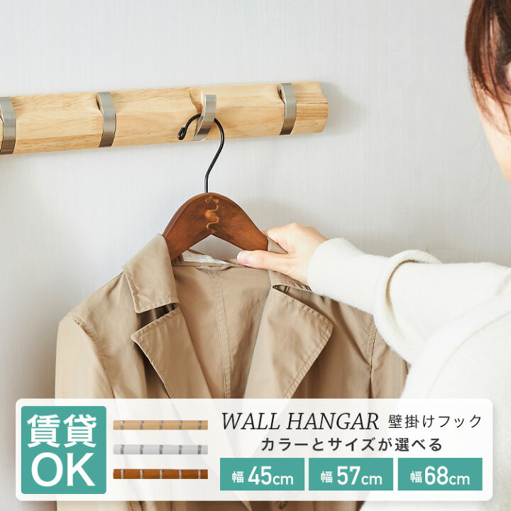 選べる3サイズ壁掛け フック ウォールフック 収納 賃貸 目立たない 木製 ボード フックハンガー ウォールフック ウォールハンガー 壁 ピン取付 幅57 幅45 幅68 ハンガーラック 省スペース 玄関収納 おしゃれ フック付き AWHラックとインテリア通販あんのん。