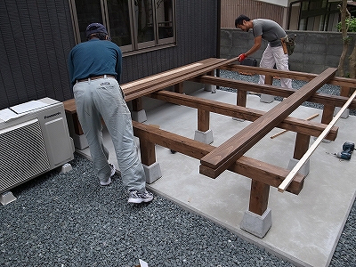 土間コンクリートの上にウッドデッキを作る - S.A様作品。