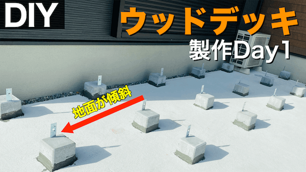 ウッドデッキ製作 1 傾斜がついている土間コンに基礎を作る - YouTube。