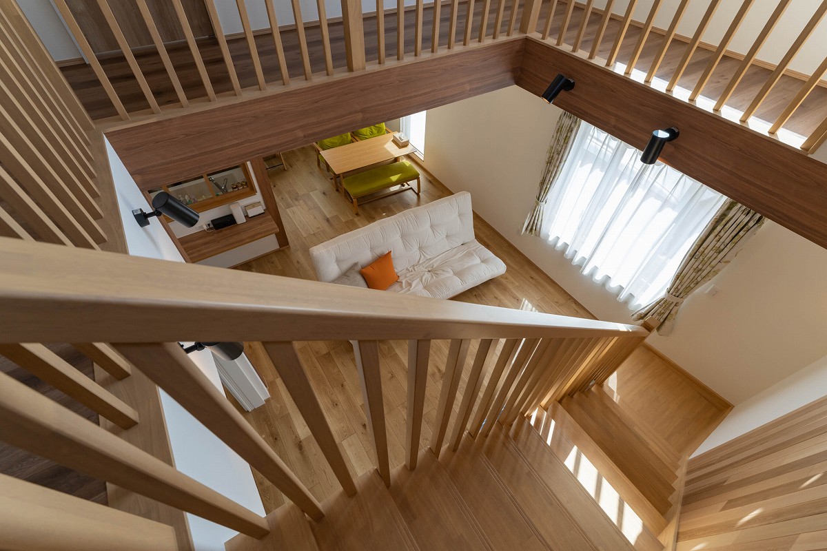 存在感のある木製階段のあるお家名古屋市緑区の工務店設計士とつくる木の家 オームラ設計。