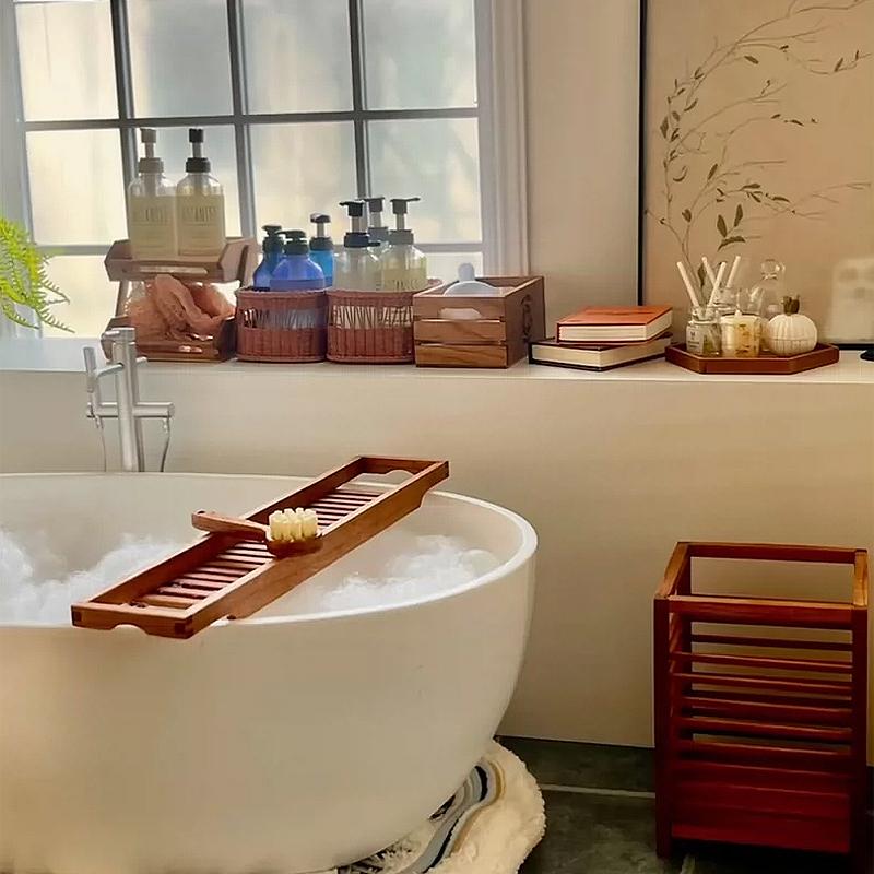 お風呂トレイ 家具・インテリア新品・未使用 バスタブトレー バスタブラック 浴室用ラック 2個セット 竹製 お風呂 物置 バステーブル バスラックバスグッズ バスブックスタンド 伸縮式。