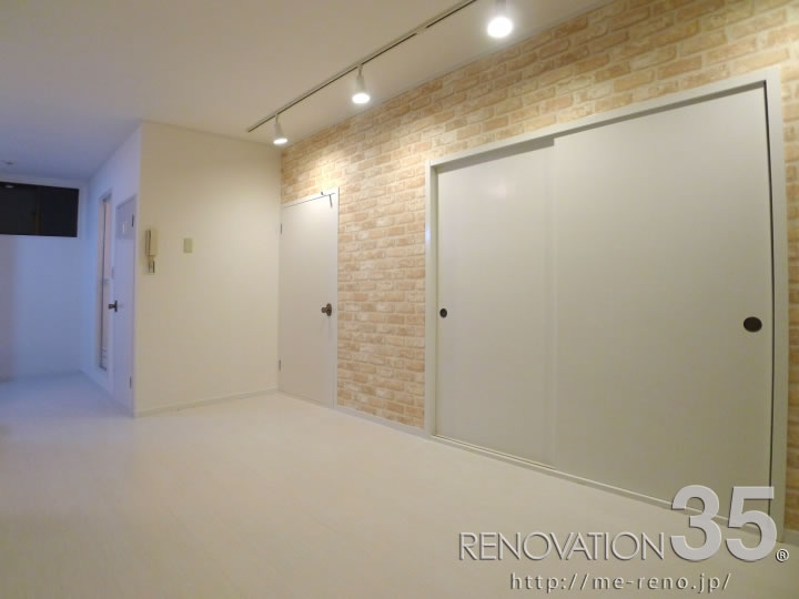 2DKのリノベーションで白×石目調クロスで作る高級感漂う空間に施工 マンション,埼玉県川口市,築27年。