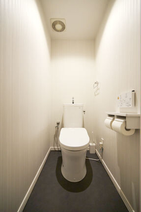 ホワイトのクロスと石目調のクッションフロアで高級感のあるトイレにリフォーム実例TOTO株式会社。
