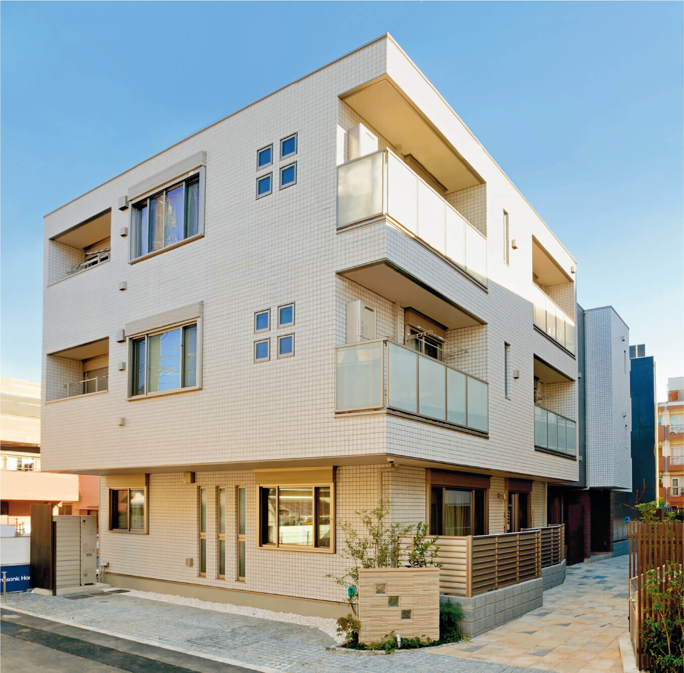 おしゃれな外構と太陽光のある完全分離二世帯住宅東京都大田区の工務店注文住宅のピスコホーム平安住宅。