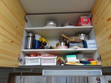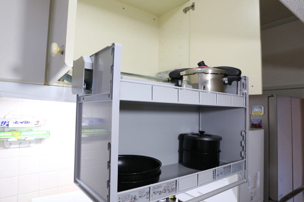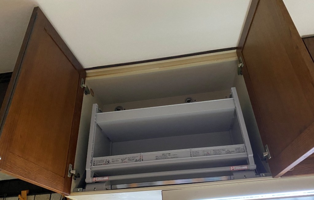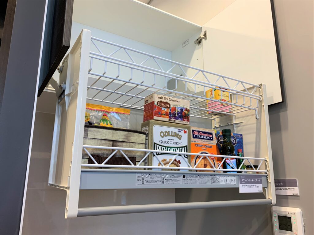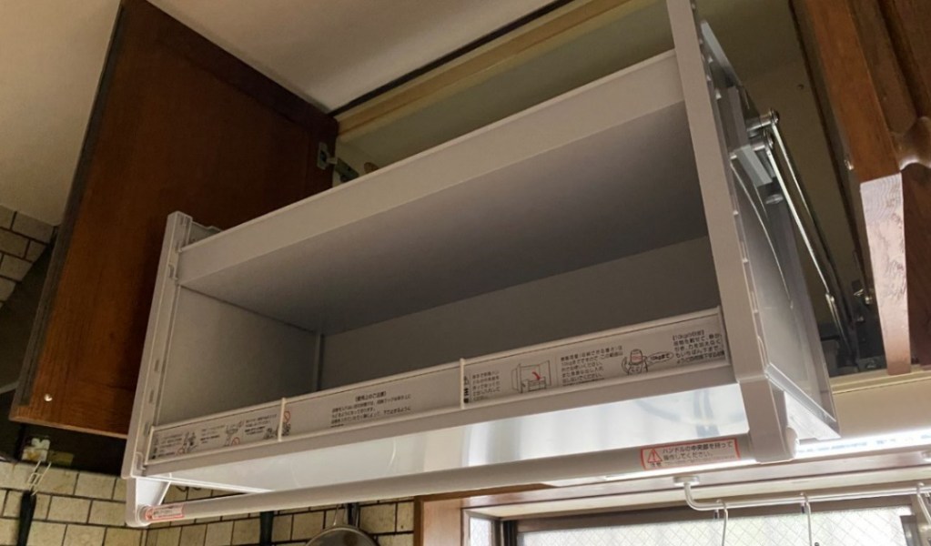 キッチン上の吊り戸棚を有効活用。後付けでデットスペースを収納場所にしあわせ生活 八重洲ショールーム。