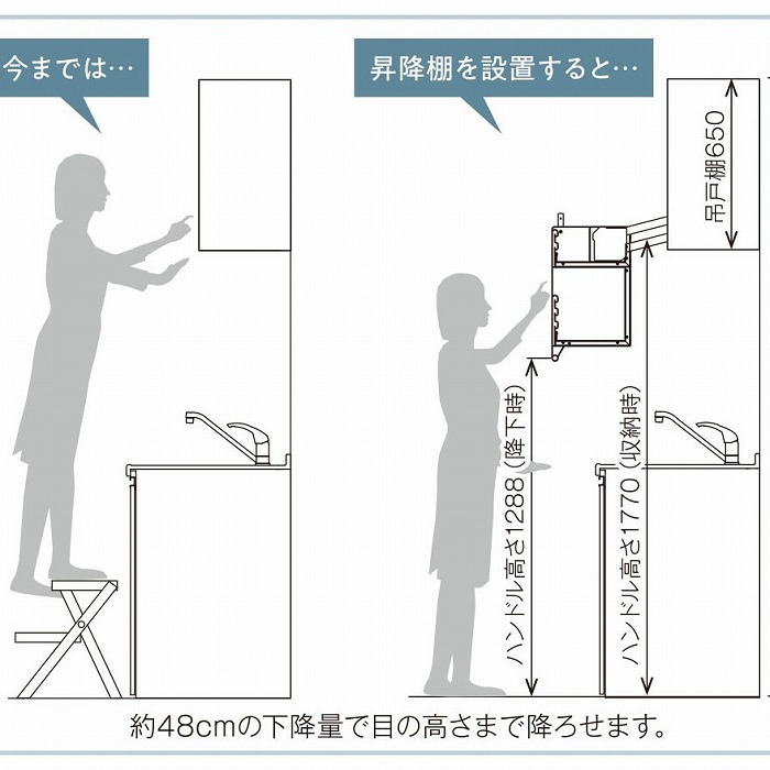 楽天市場 昇降式吊戸棚 ダウンキャビネット JDS600 幅600mm吊戸棚用: キッチンパーツショップ カレント。