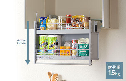 昇降式吊戸棚スイングダウンウォールJDS60603・JDS75606・JDS90603 ※吊戸棚別途- E:kitchen。