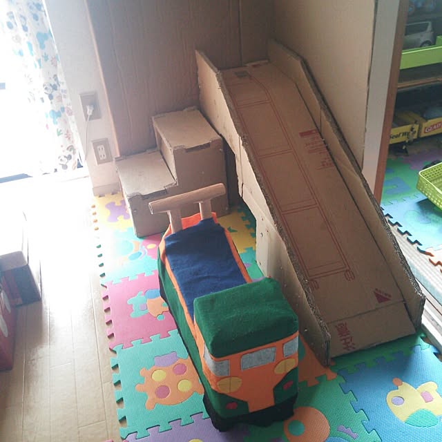 手作りおもちゃ*段ボールすべり台*なまっくまな生活。