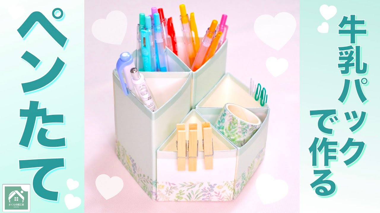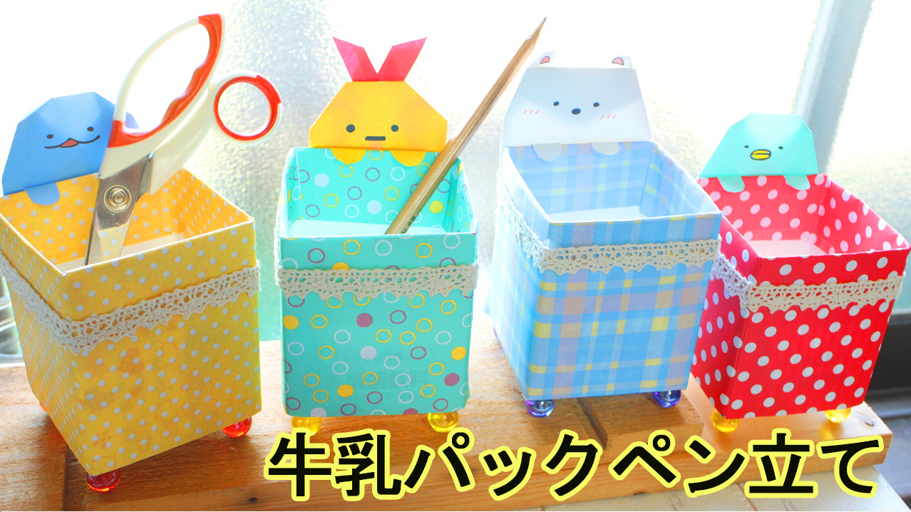 牛乳パックのペンたてデスクまわりがスッキリ!とっても可愛いペンたて夏休みの工作にも paper craft。