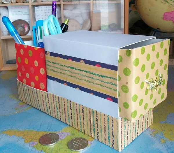 ペン立て工作+牛乳パック小物入れ=秘密の貯金箱で一石三鳥! – こども工作レシピ。