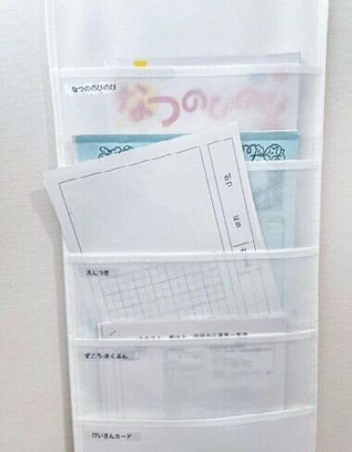 学校用ノートのストックは「DAISOの吊り下げシャツ収納」を活用!収納術や整理整頓のアイデア暮らしニスタ。