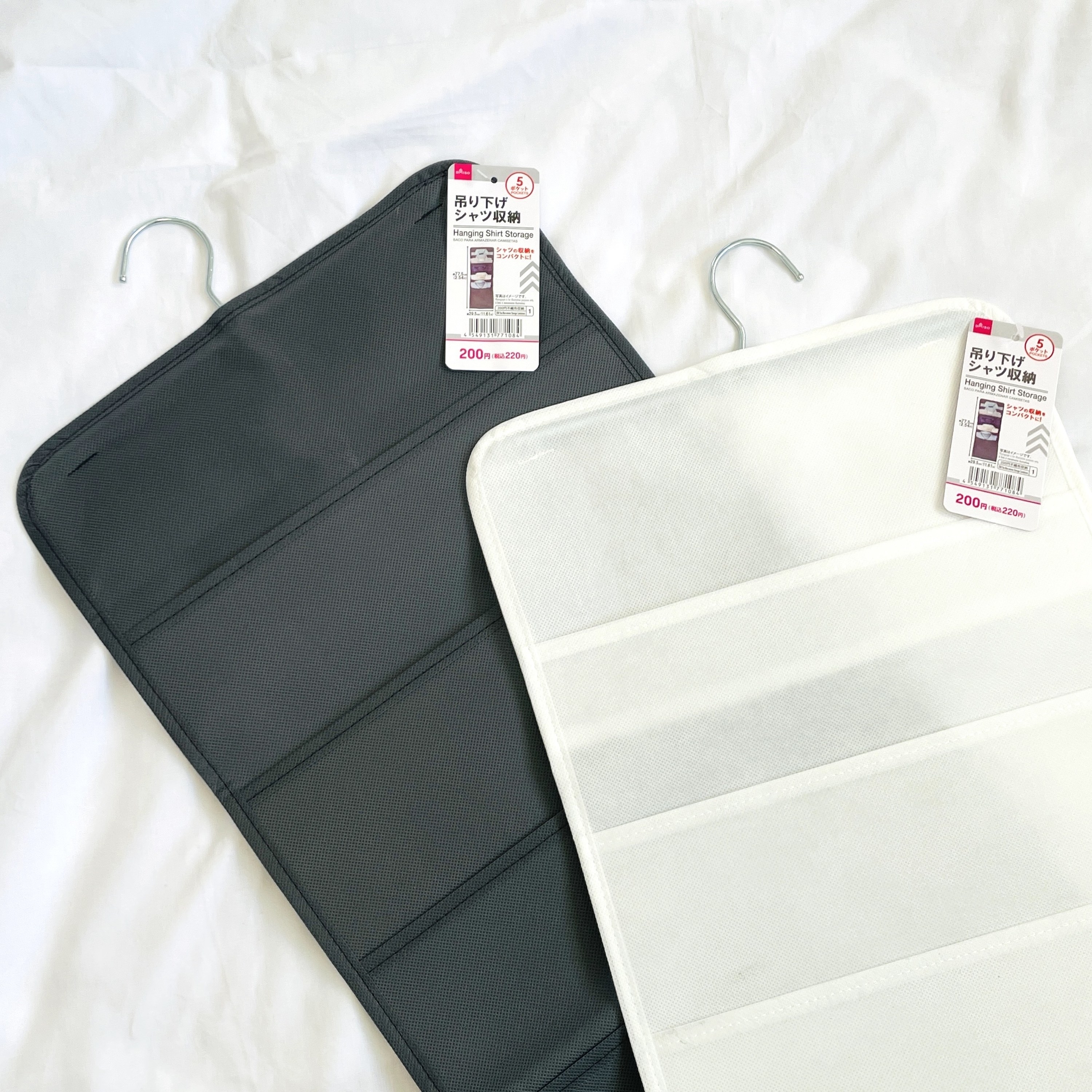 売り場はどこ?ダイソー「吊り下げシャツ収納」の使い方。書類など収納アイデアも。くらしとふわっと100均ブログ。
