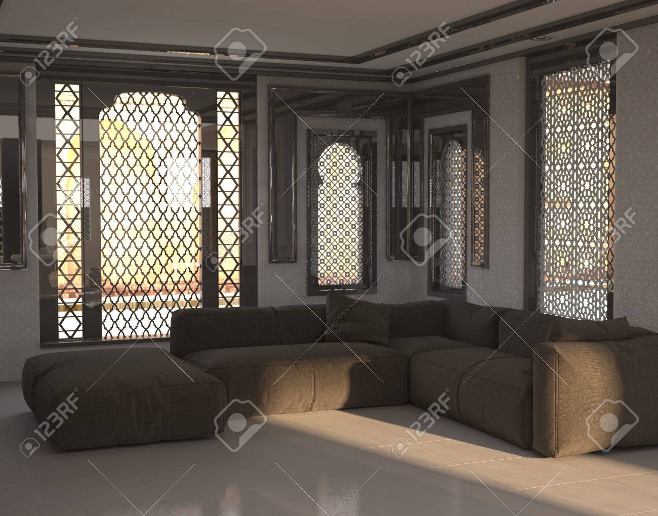 リビング ルームやラウンジにはソファとアラビアまたは中東スタイルの窓と部屋でオスマン帝国の建築インテリアの写真素材・画像素材 Image38436662。