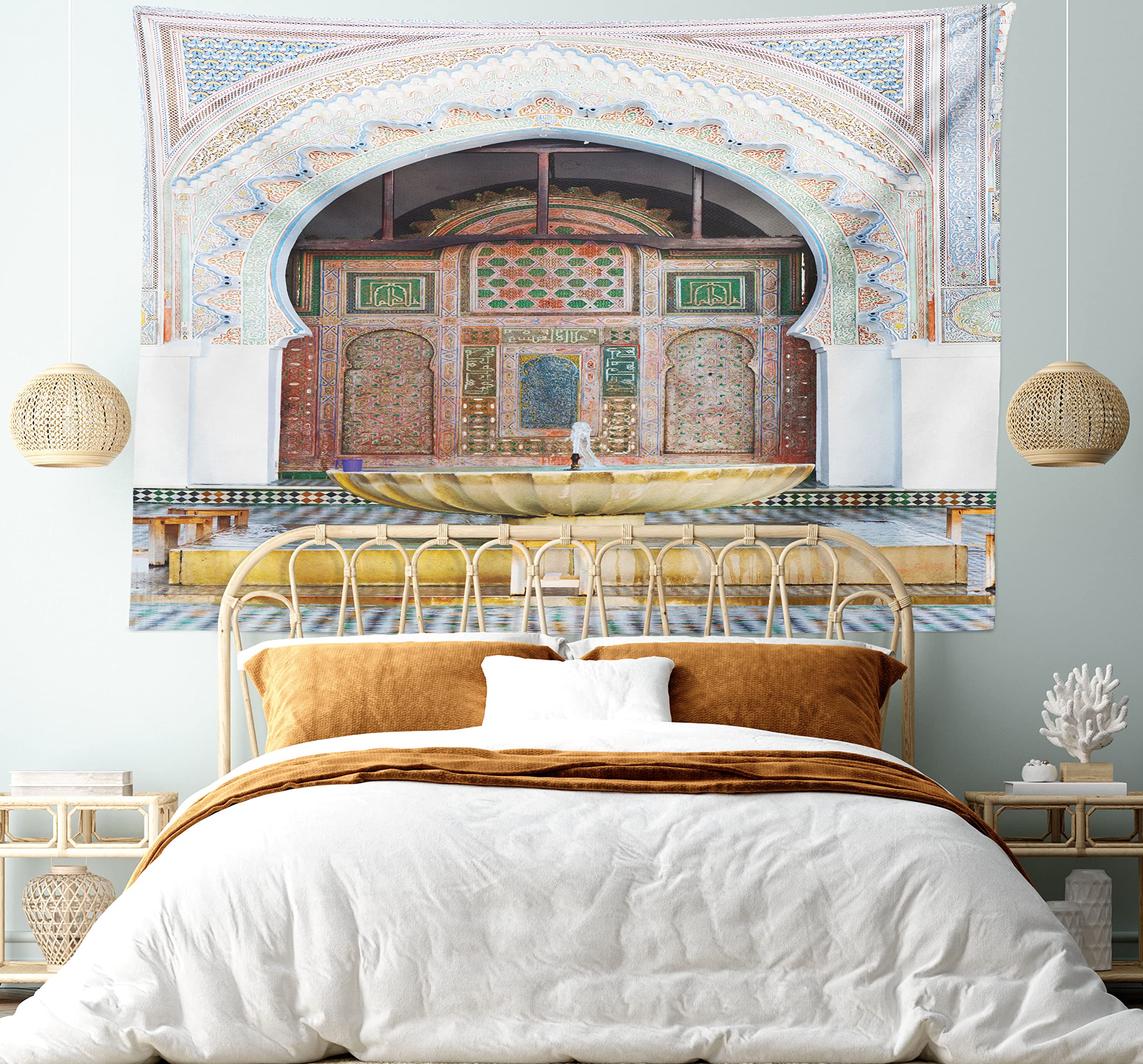 Amazon.co.jp: アラビアンインテリアコレクション、アラビアイスラム幾何学オリエンタルエスニックパターンとヴィンテージカラフルアートプリントのパターン、寮の寝室のリビングルームの壁のタペストリー、-80x60インチ200x150cmtap_15407_Arabian_6.21_-80x60。