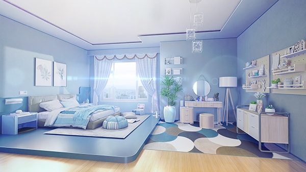 おしゃれなブルー系の部屋の背景素材-スコマド。