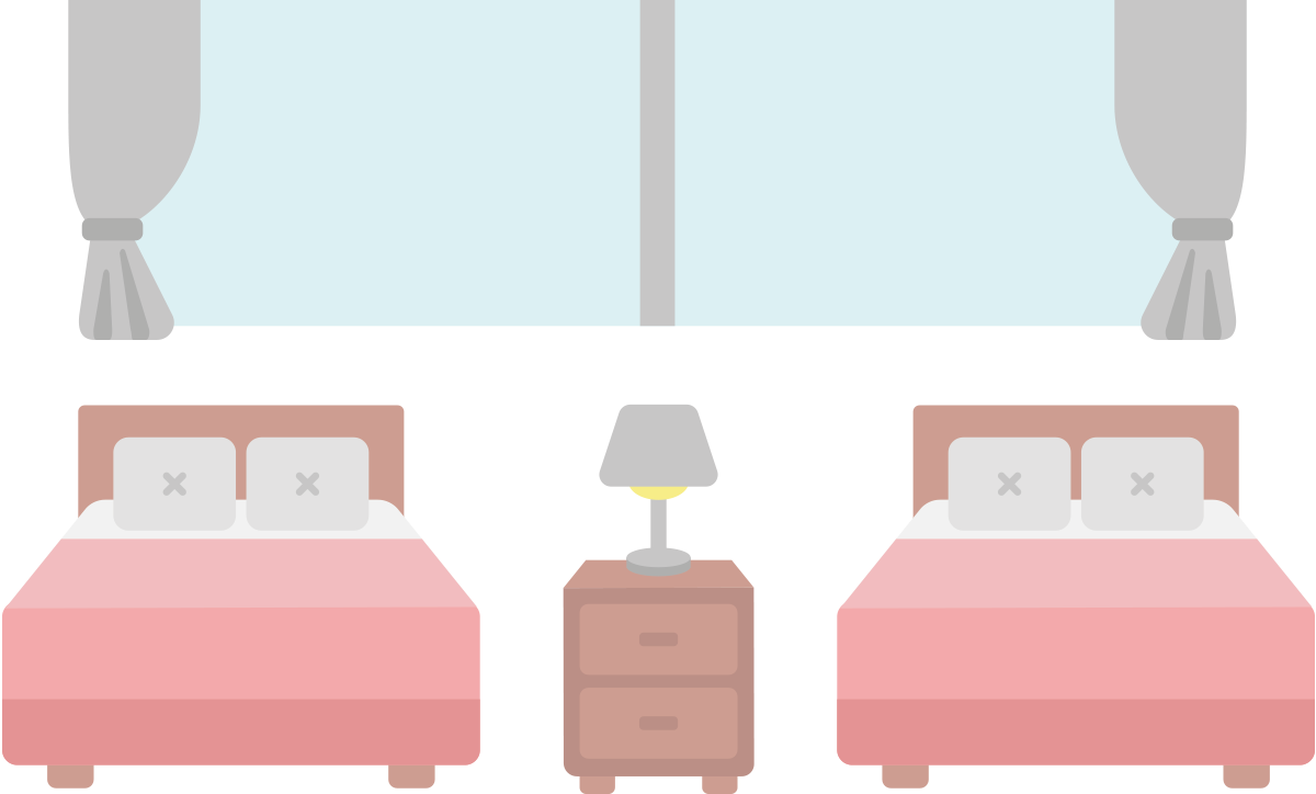 ホテル&ビジネスホテル:ホテル ツインルームフリーイラスト素材 「趣味で作ったイラストを配るサイト」。