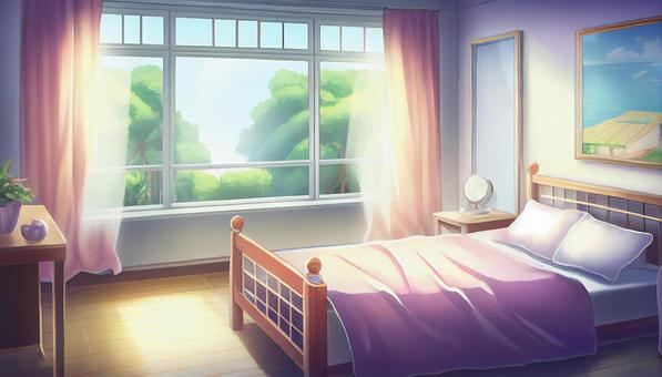 フリー素材寝室の窓際のベッド 12枚背景イラストみんちりえ。