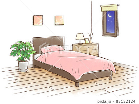 寝室 夜 _ピンク色のベッドのイラスト素材85152124- PIXTA。