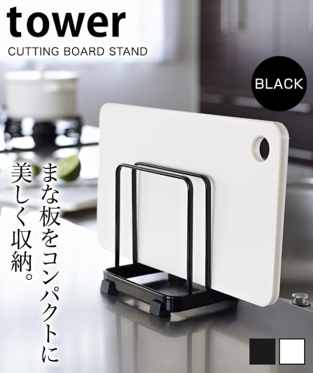 tower キッチンまな板&トレースタンド タワー山崎実業 タワーシリーズ まな板スタンド キッチンスタンド キッチン 収納 布巾キッチンツール ゴム手袋 洗剤 ラック シンク周り ホワイト ブラックブラックブラック : リビングート ANA Mall店ANAMall。