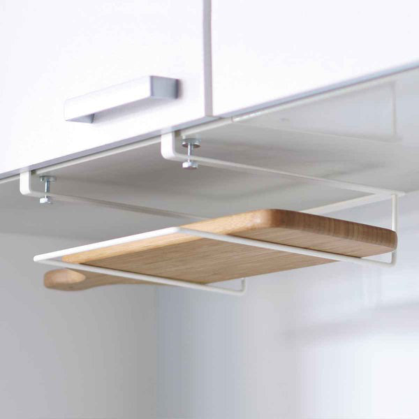 戸棚下まな板&布巾ハンガー タワー ホワイト ブラックタワー TOWER 2493 2494 キッチン収納 まな板スタンド まな板ホルダーまな板立て まな板収納 引っ掛け 戸棚下 つり棚 吊り戸棚 つり戸棚 ふきん掛け タオル掛け インテリア 山崎実業YAMAZAKI 57-0249。