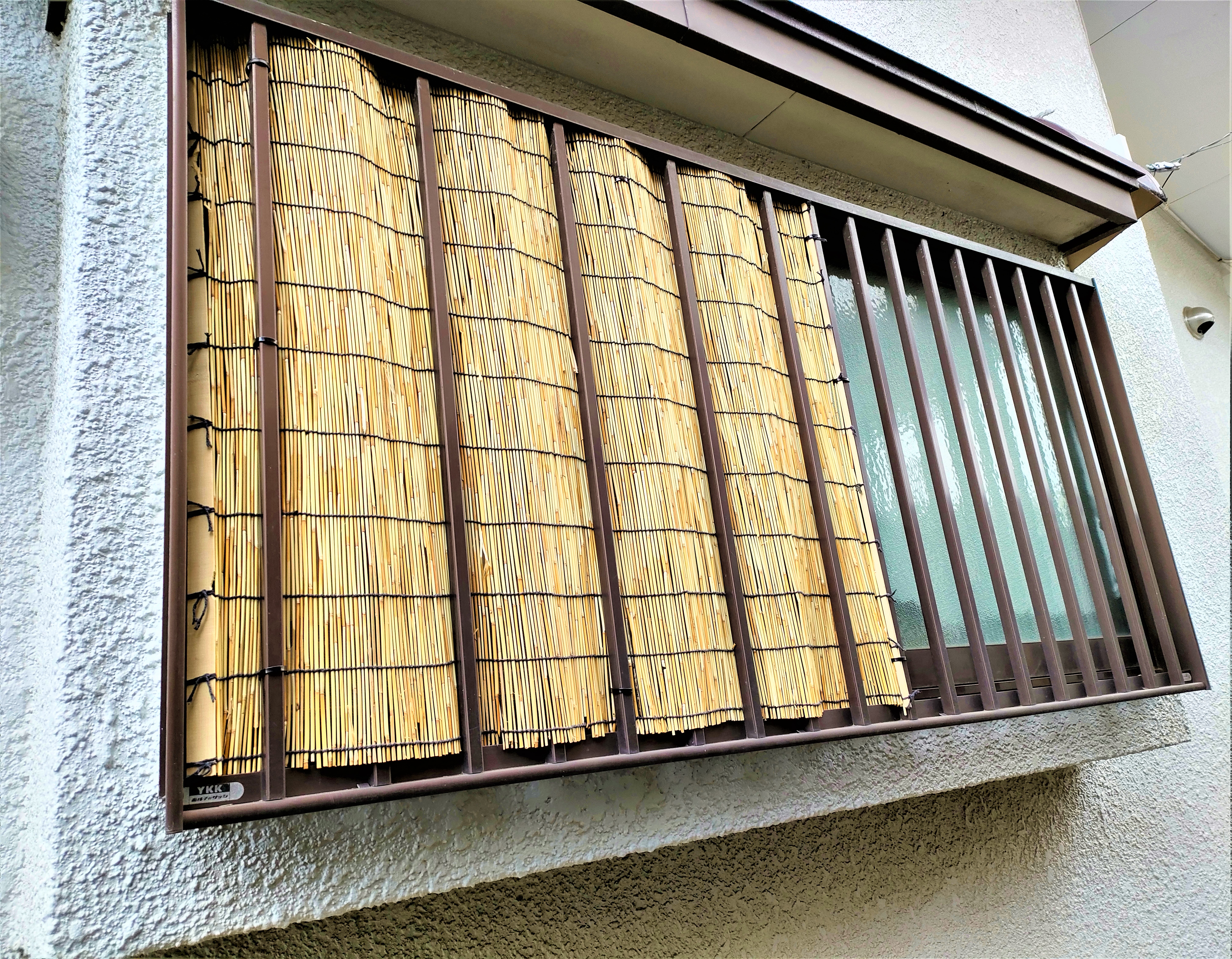 台所の窓にスダレ設置‥‥風通し良し!目隠し良し!楽しい70代にしよう。