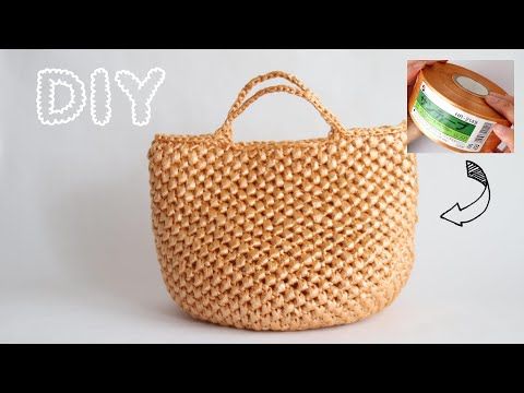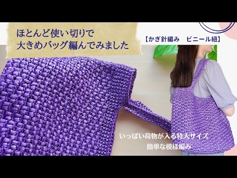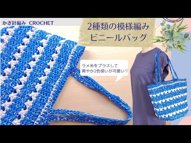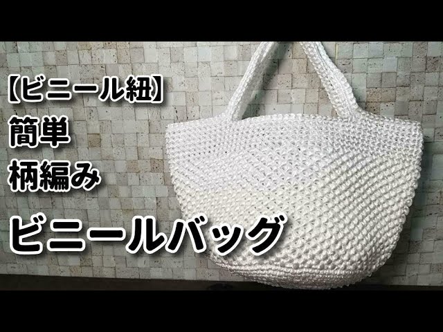 🔰スズランテープ ビニール紐 超簡単♪模様編みでちょっと大き目バッグの編み方 かぎ針編み crochet bag。