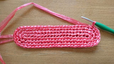 ビニール紐でかぎ針編みバッグを編む方法 持ち手編。
