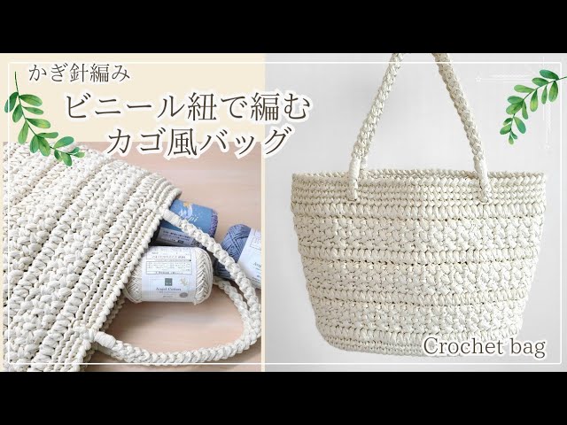 かぎ針編み 簡単丈夫なビニール紐バッグの編み方☆How to crochet bag。