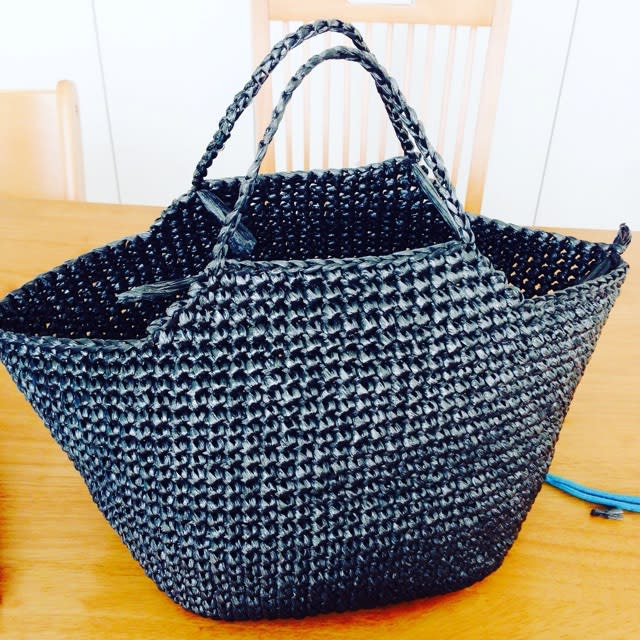 ビニール紐でバッグ編んだ かぎ針編み- こつこつ日和。