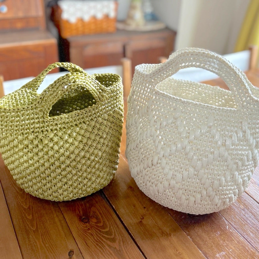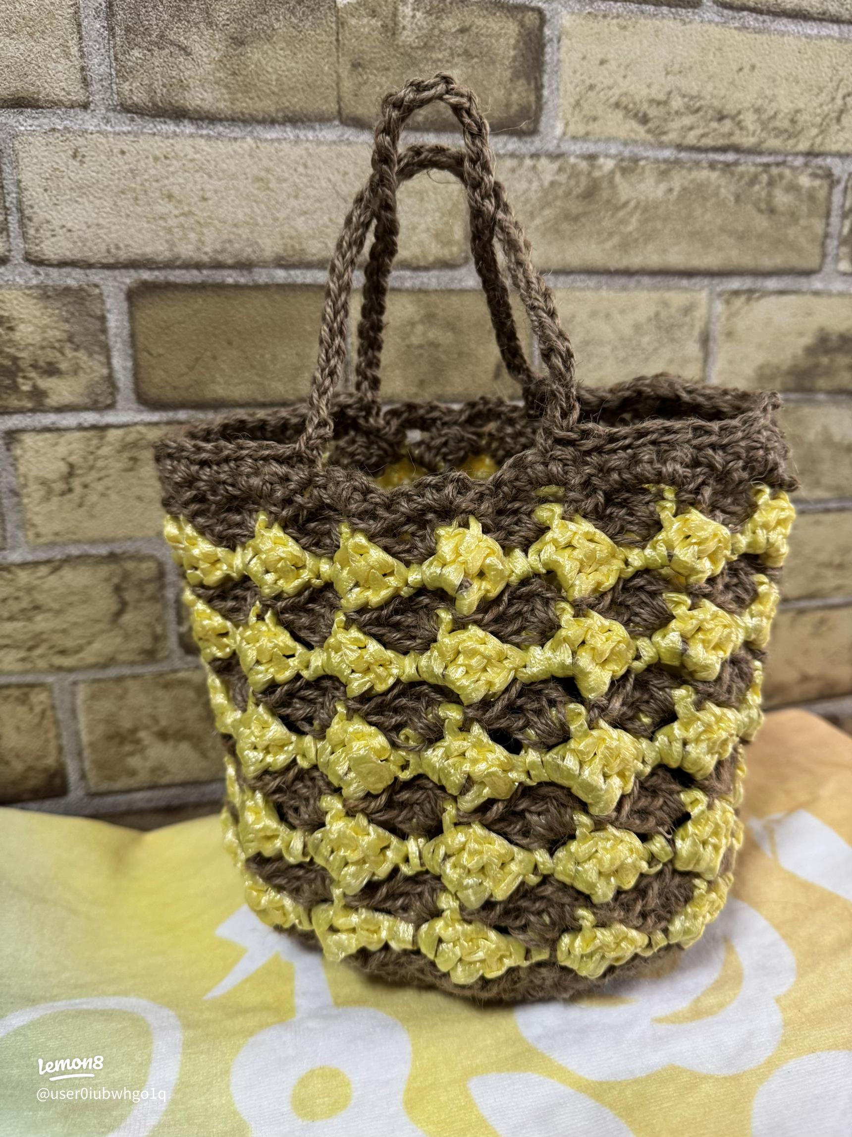 🔰スズランテープ ビニール紐 かご風が可愛い♡難しそうに見えて簡単模様編み‼ かぎ針編み crochet bag。