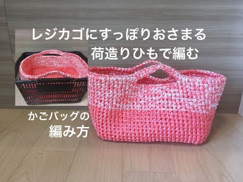 レジかごバッグの編み方ビニール紐かぎ針編み。