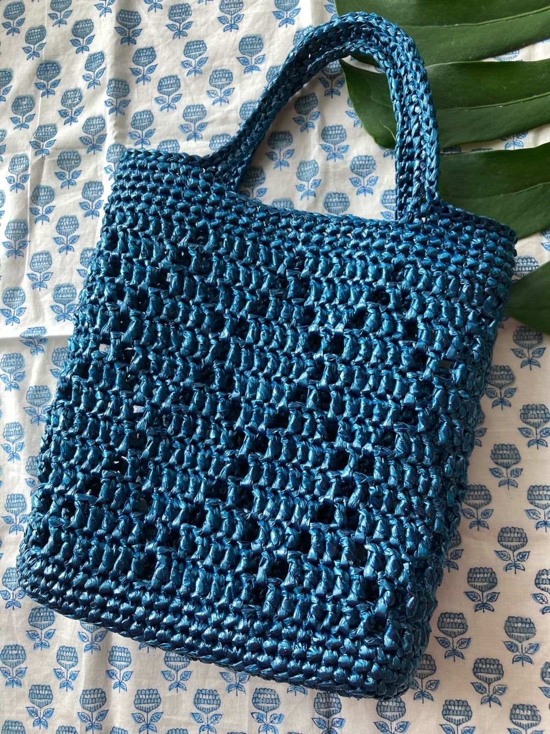 ビニールひもバッグ ビニールテープバッグ スズランテープバッグ ブルー ①。