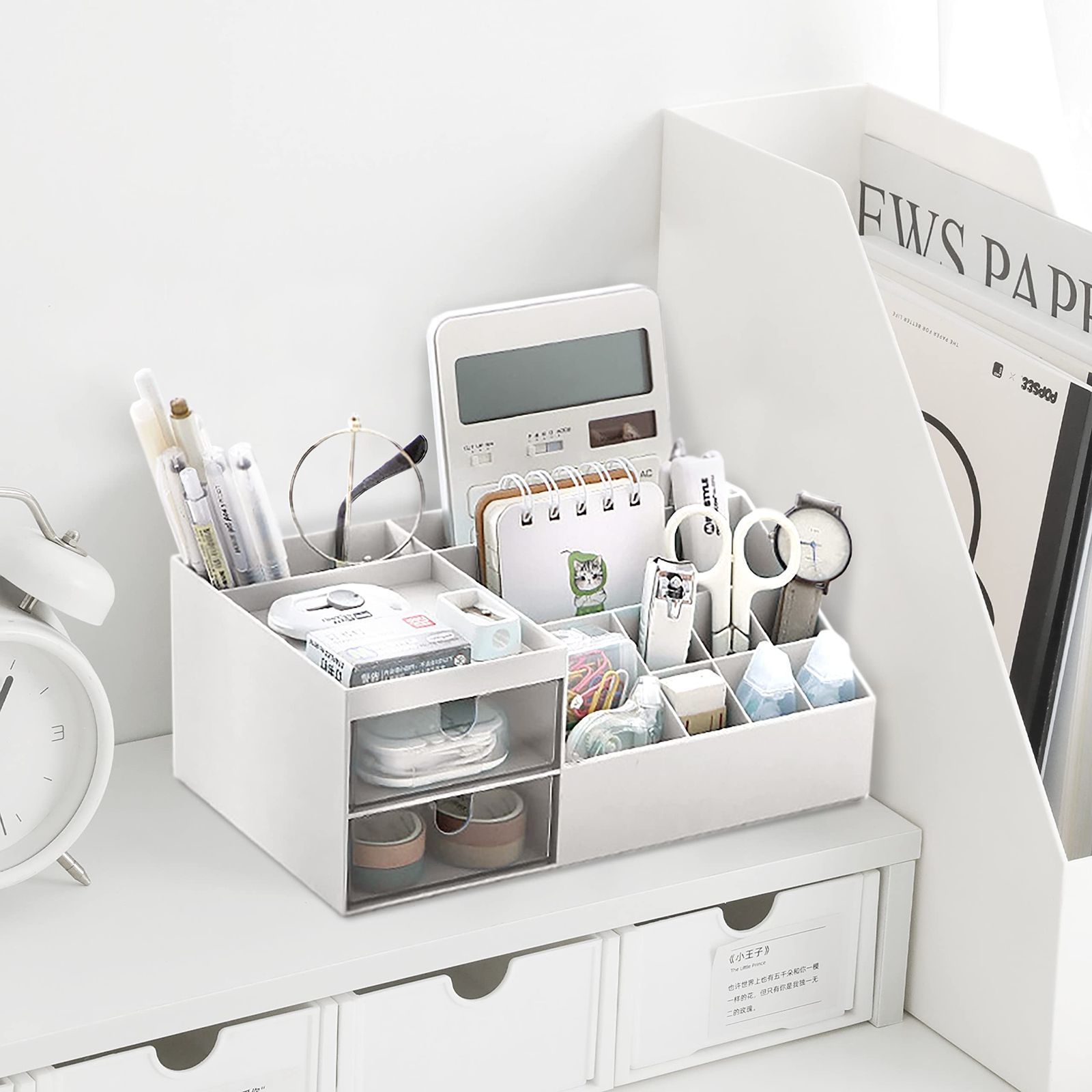 化粧品収納 おしゃれ 文房具収納 デスク引き出し デスク収納ボックス ホワイト 机上ラック リモコンラック 卓上ラック HOGAWAYデスクオーガナイザー 小物入れ ペン立て。