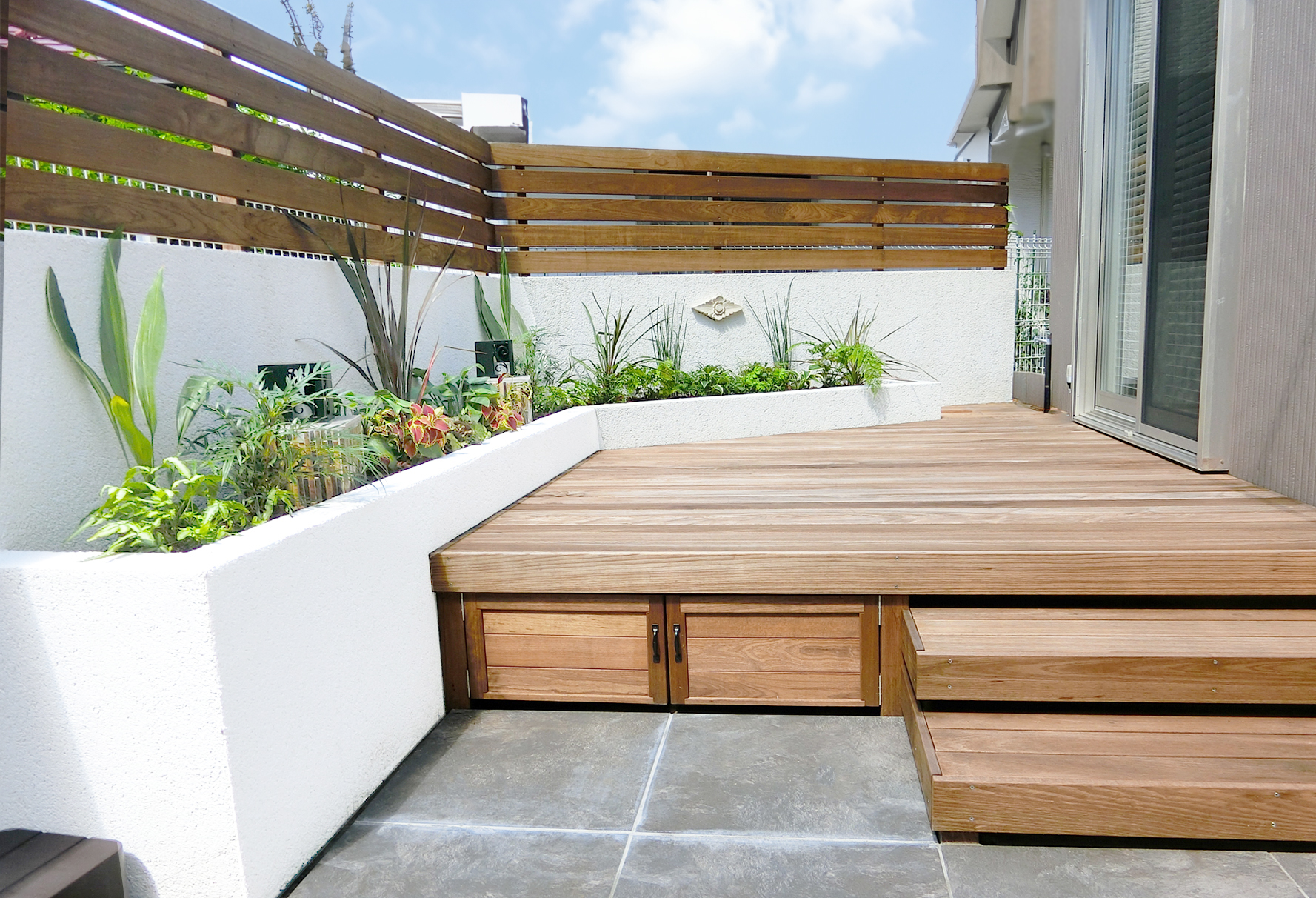 狭い庭 ウッドデッキ大改造で広くておしゃれな庭に大変身! 外構。