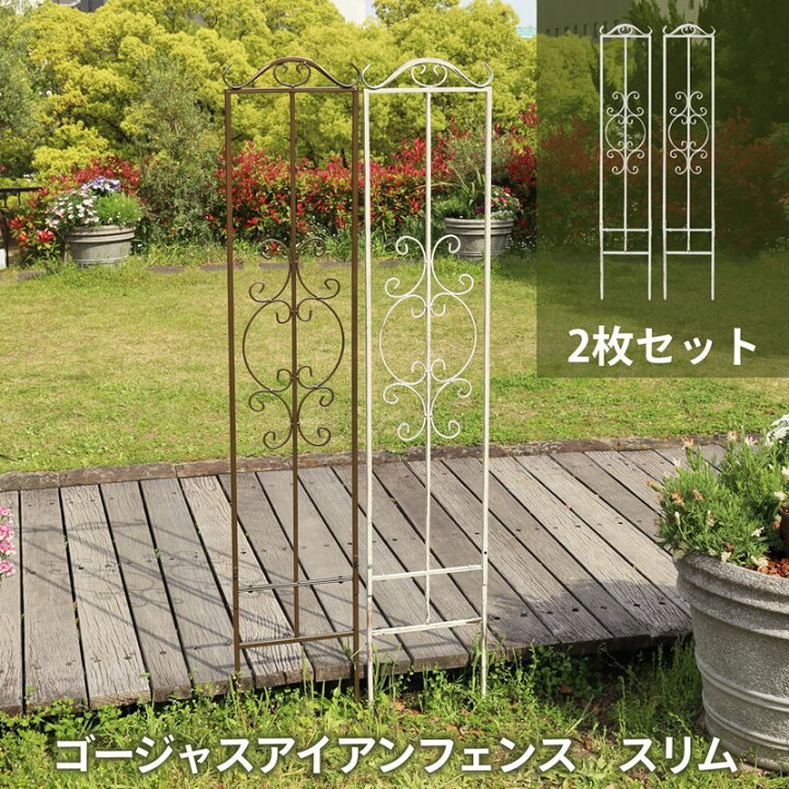 楽天市場 ゴージャスアイアンフェンス スリム 2枚セット ガーデン トレリス アイアン クレマチス バラ用 オベリスク モッコウバラ 誘引 バラガーデニング フェンス つるバラ つる性植物 目隠し 屋外 犬 脱走 防止 簡易 隙間 カバー ipn-slm7955-2p : ガーデンガーデン。