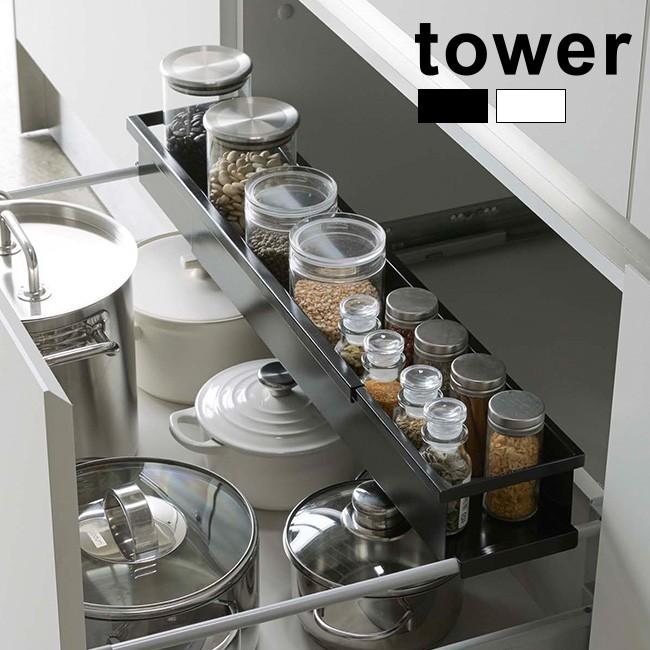 山崎実業 伸縮ラック 伸縮キッチン引き出し中ラック タワー ワイド 1731 1732 調味料ラック キッチンラック 収納ラック 調味料入れ 棚おしゃれ シンプル 便利 tower キッチン収納 シンク下収納 引き出し収納 yamazaki タワーシリーズセレクトショップ・AQUA アクア。