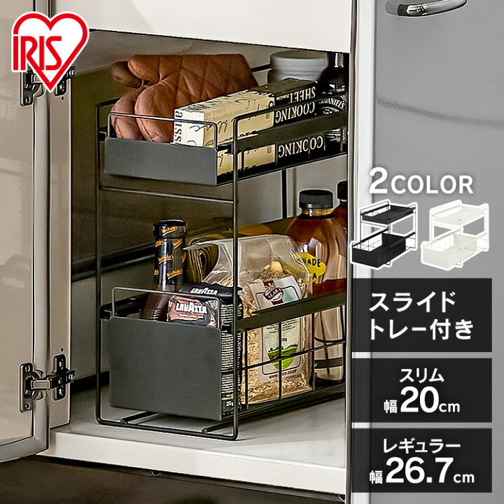 楽天市場 シンク下収納 スライド 引き出し スリム ベーシック 調味料ラック 調味料 収納 シンク下 ラック 調味料 隙間収納 洗面所 キッチン収納棚 2段 おしゃれ かわいい 省スペース 新生活 一人暮らし ホワイト ブラック アイリスオーヤマ SSR-200 SSR-270 : カー。