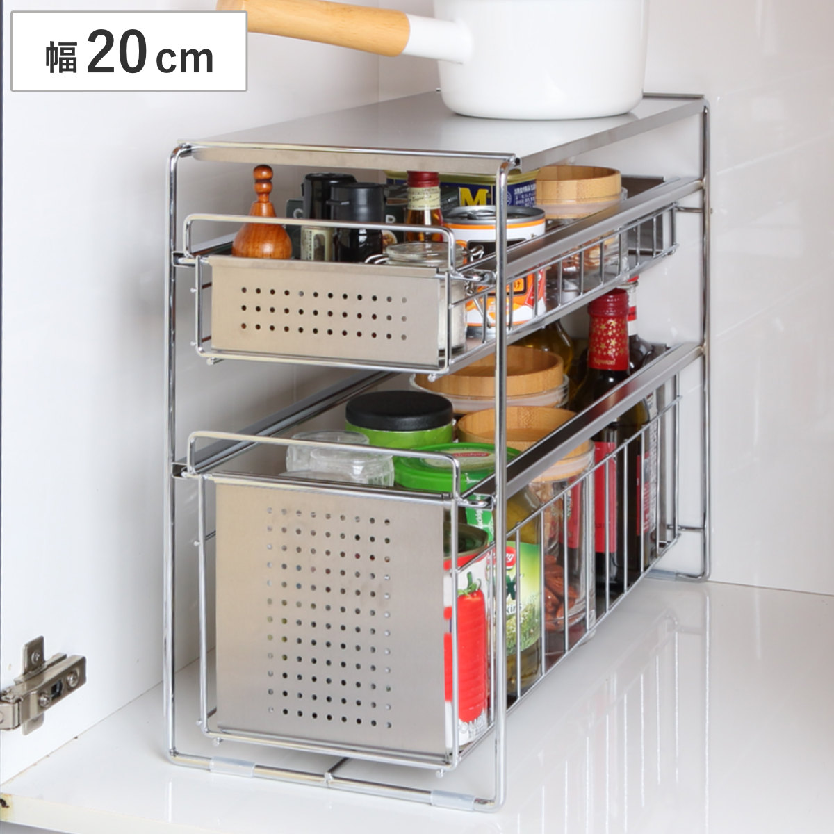 dショッピング シンク下収納 シンク下スライド収納 2段 幅20cmシンク下収納ラック 引き出し付き スリム シンク下 コンロ下キッチンストッカー ステンレス スライドラック 隙間収納 引出し ワゴン キッチン 洗面所 収納 おしゃれ 日本製カテゴリ:キッチン収納。