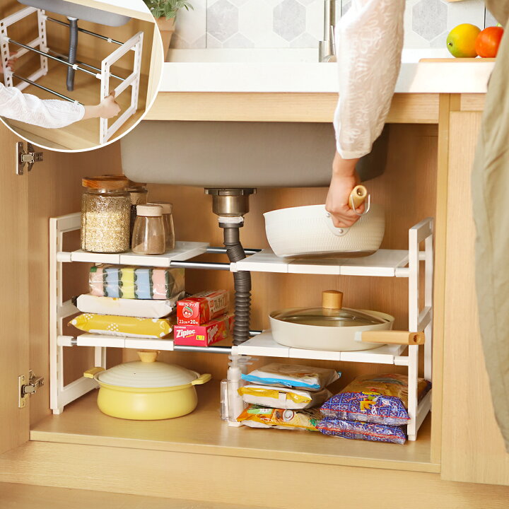 楽天市場即納 シンク下 ラック 2段 伸縮 引き出し スライド 簡単組立 伸縮棚 キッチン収納棚 洗面台下 シンク下フリーラック 棚スライドラック 伸縮式 キッチン収納 台所 シンク下フリーラック 流し台下 洗面台下 調理台 : チチロバ TITIROBA 楽天市場店。