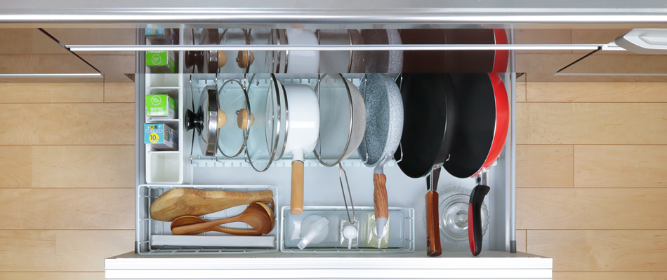 キッチンの引出し収納のコツをプロが伝授!シンク下やコンロ下を上手に使おうサンキュ。
