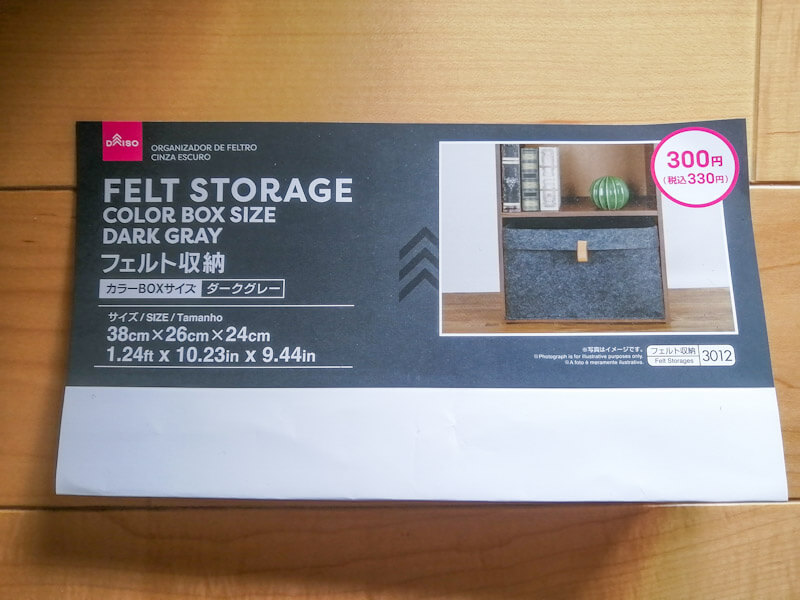 100均「フェルト収納ボックス」の商品情報とサイズ・収納例。セリアで販売 4947879003304。